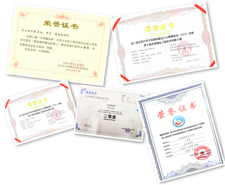 武汉商学院机器人工程专业的大学生们,在老师的带领下,已累计有90余人次参加省部级以上竞赛,荣获国家级、省级以上奖项50余次,20余人次主持参加省部级大学生创新创业项目,30多人参加校企科研项目,已申请各项机器人专利20余项,获得全国机器人专利优秀奖1项。