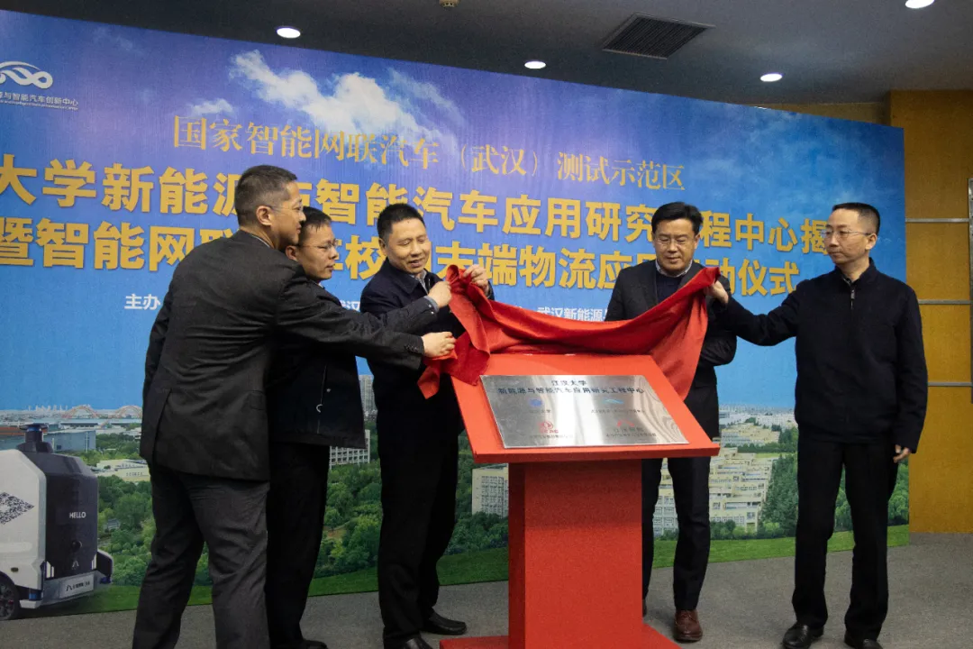 江汉大学启动末端无人驾驶物流配送应用的同时,该校新能源与智能汽车应用研究工程中心揭牌,探索智能网联和自动驾驶产学研一体化发展新模式。