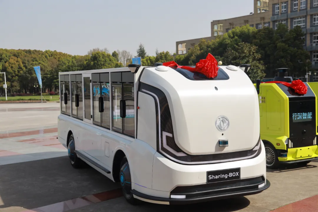此次进入江汉大学的无人驾驶物流车,分别是东风汽车股份有限公司的Sharing-Box无人驾驶售货车和长沙行深智能科技公司的无人驾驶物流配送车。