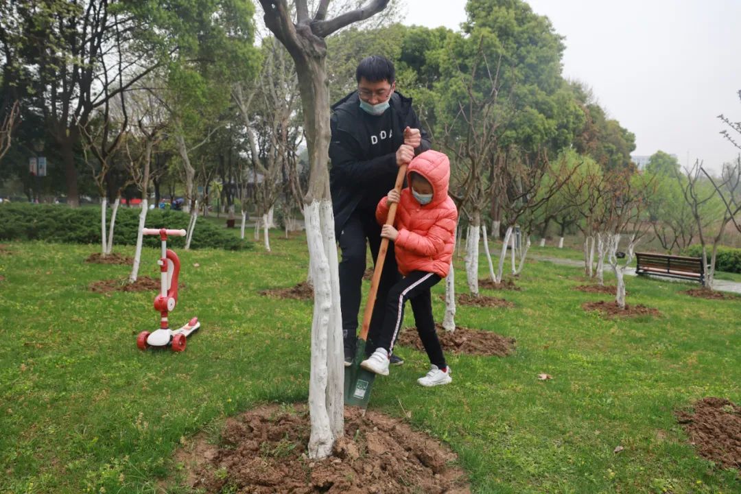 “今天正好是我家二宝的生日,带着孩子们一起来认养树木,意义非凡,也希望孩子像树苗一样茁壮成长!”市民曹先生说。