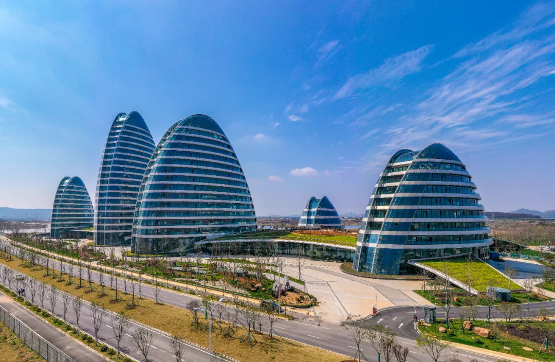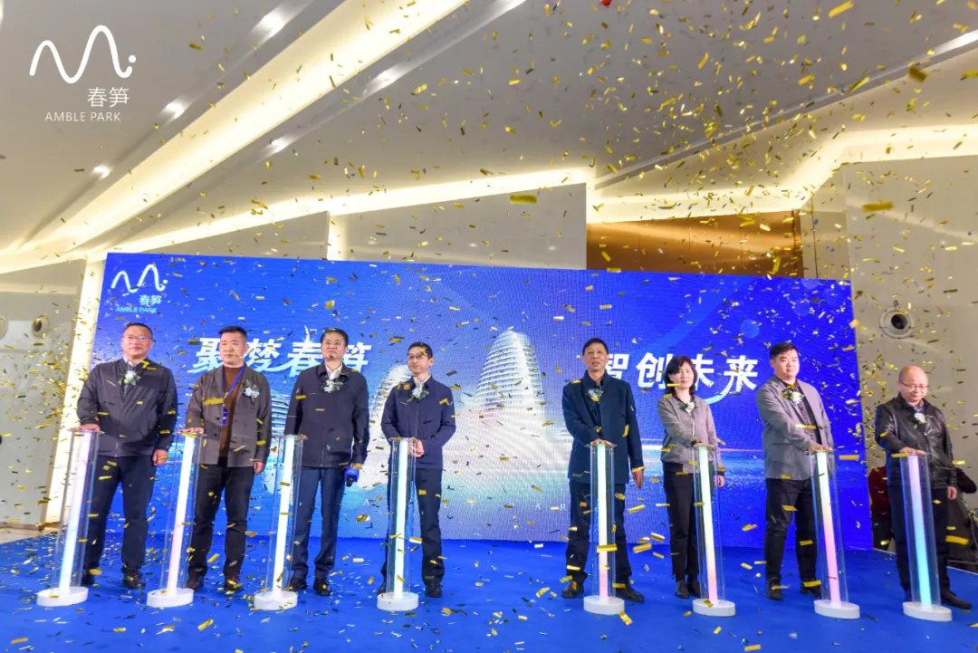 春笋位于武汉国家新能源和智能网联汽车基地内,毗邻川江池公园,总建筑面积约12.7万平方米,包含5栋塔楼及南北两个共享大厅,项目主要布局孵化加速区、大学生(留学生)创业基地、创新商务办公区、政务服务区、街区式商业服务配套区等。