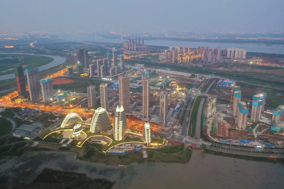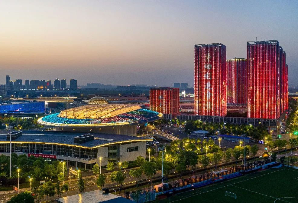 夜晚的车谷数字产业新地标----“春笋”熠熠生辉,仿佛镶上了一层金边。