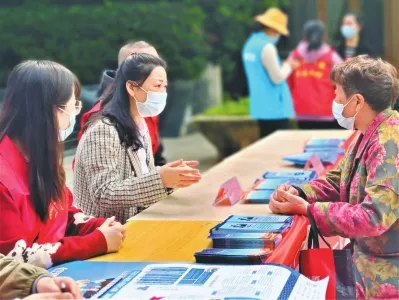 ▲武汉经开区(汉南区)医疗保障局党员为群众宣传医保政策。