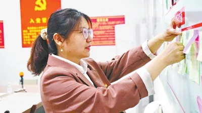 ▲武汉经开区沌阳街新华社区“第一书记”迟莹莹为社区准备廉政寄语。