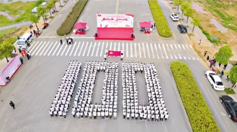 ▲4月28日,武汉经开区军山街举行庆祝建党100周年暨第七届全民健身长跑比赛,500余名选手在活动场地摆出了数字“100”的字样。