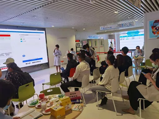 护士节活动设置于门诊二楼,现场划分出5大专项护理区——冠心病、糖尿病、PICC(经外周静脉穿刺中心静脉置管)、心衰、妇产科。由该院高年资护士长坐诊,对以上五项专业进行现场教学与答疑。
