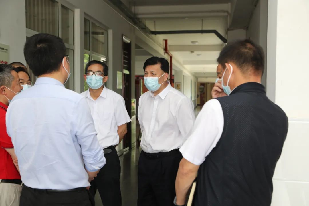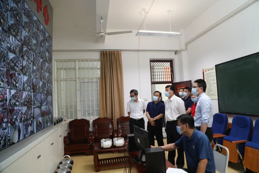 在考点现场,刘誓保认真查看考点保密室、监控室、考务办公室、考生入场通道等环境及安全情况,现场听取相关部门2021年高考准备工作汇报,详细了解考场设置、考生数量、疫情防控、食品安全工作等情况。