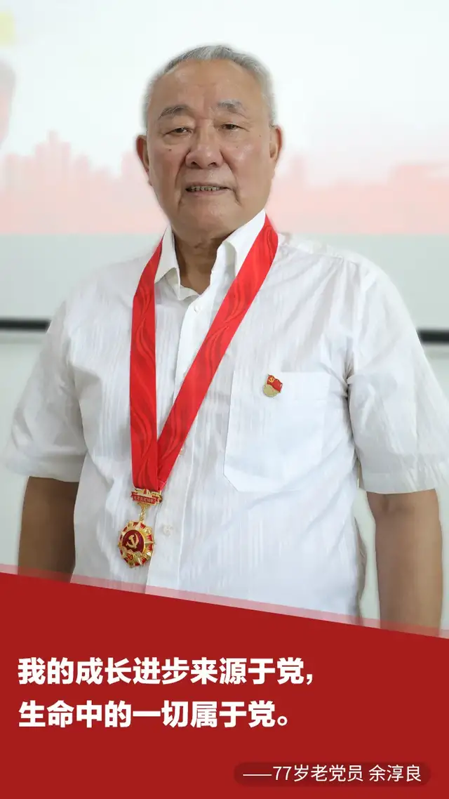 “我的成长进步来源于党,我生命中的一切都属于党。” 轻抚着刚刚获得的“光荣在党50年”纪念章,77岁的老党员余淳良内心激荡。