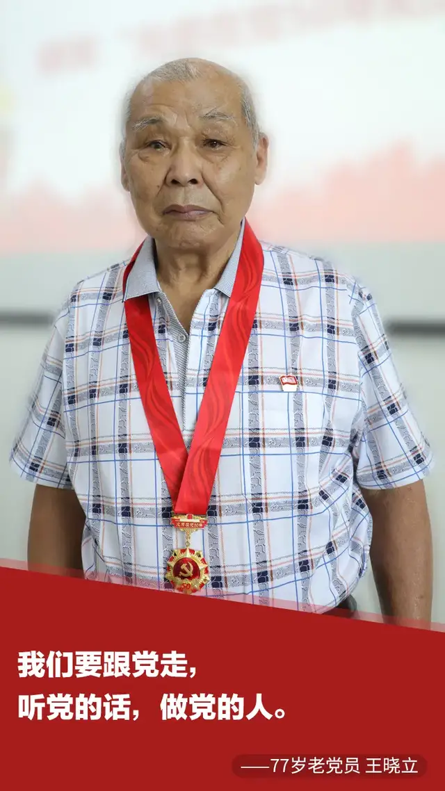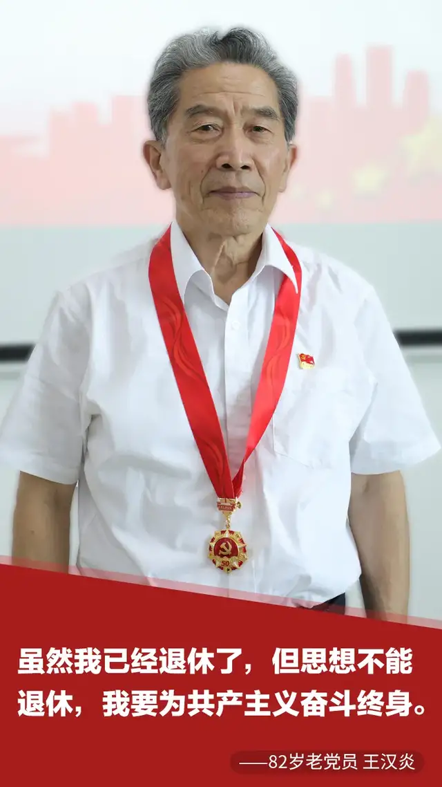 “作为一名有着58年党龄的老党员,我更应该要不忘初心、牢记使命,在这大好的形势下,继续保持过去艰苦奋斗的精神和优良作风,永远跟党走。”今年82岁高龄的王汉炎曾参加过援越抗美战争,荣立三等功。