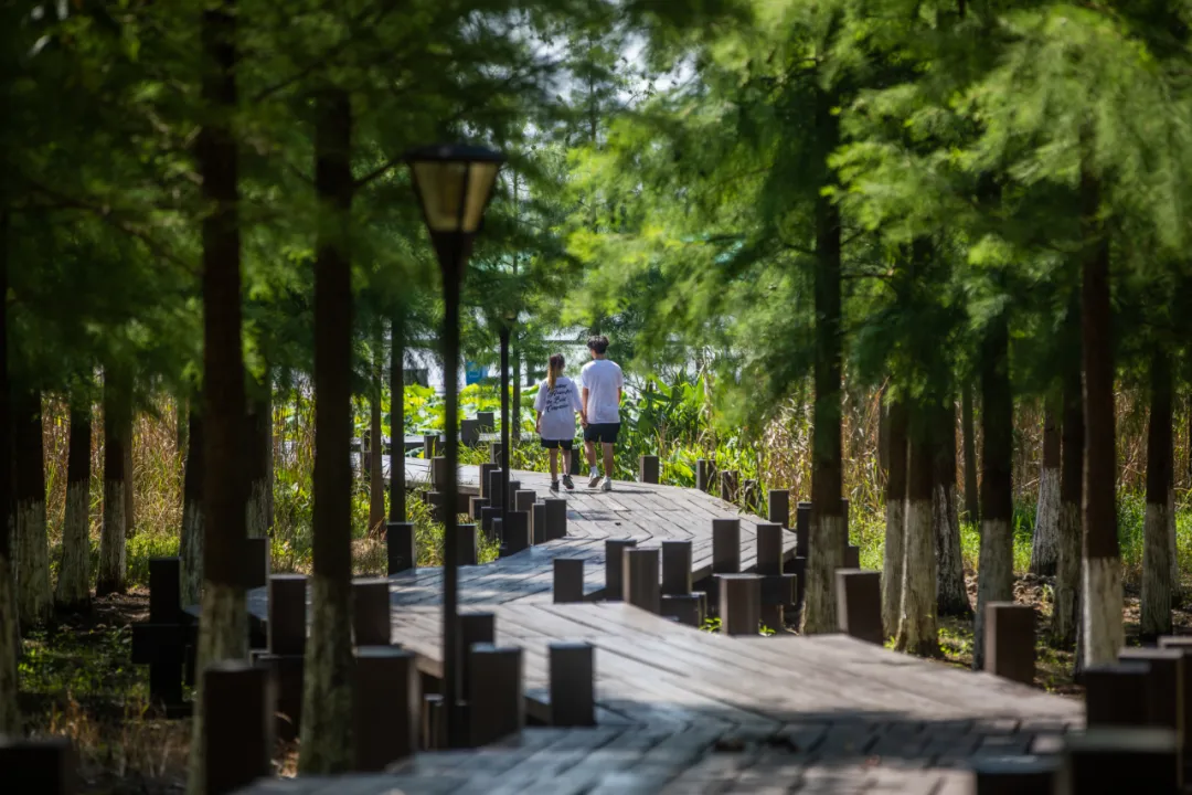 景区充分利用原始地形地貌进行景观改造,将绿色自然、历史文化、现代科技完美融合,实现了废弃矿山变为绿水青山的生态奇迹,已建成“九曲湾湿地”、“十里花坡”、“环山绿道”等核心景观。