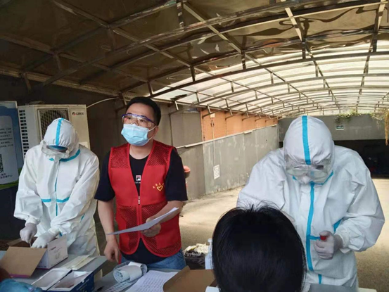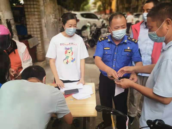8月3日,区城管局全员95人下沉沌阳街新民社区和郭徐岭社区,协助社区开展核酸检测、疏导人员等疫情防控工作。
