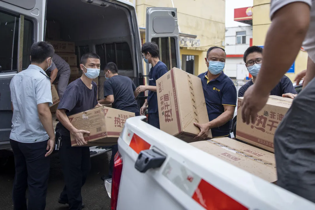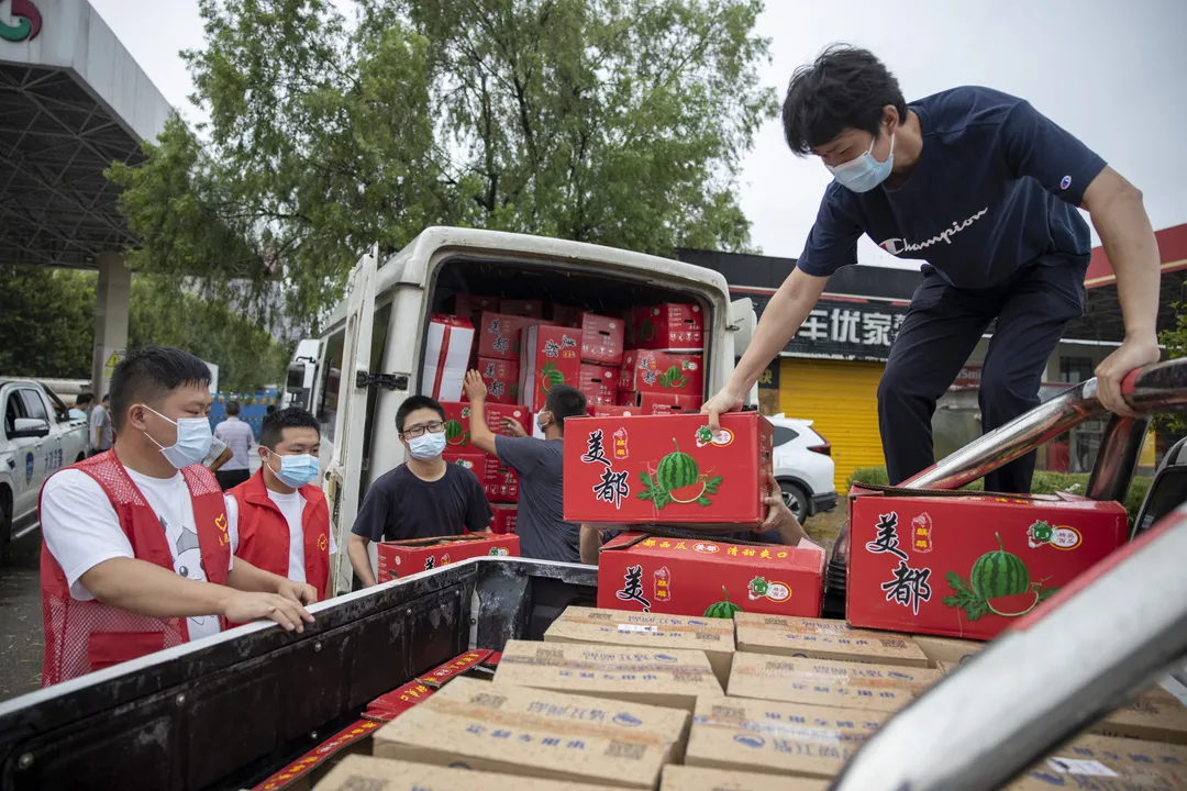 接受完捐赠物资后,军山新城立即组织物资登记、分配,第一时间启动转运,下午4时许,所有物资已全部送达施工单位手中。