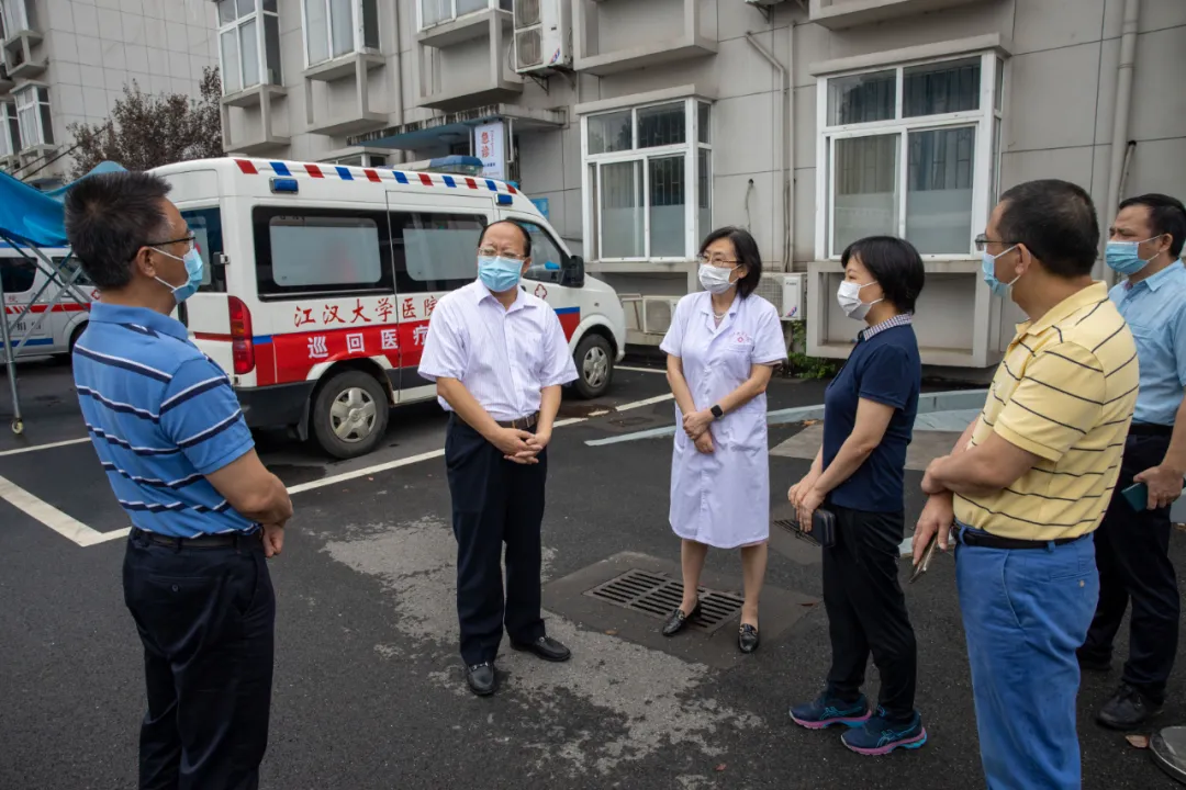 在江汉大学校医院,刘子清了解了学校疫情防控工作开展情况,并提出区校要加强协作,稳妥做好新学期开学工作预案,确保师生生命安全和身体健康。