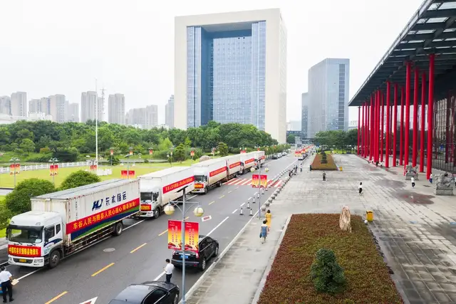 8月15日上午8点,6辆装满方便面、矿泉水等生活物资的大卡车,从武汉经开区出发,驶向遭受特大暴雨袭击的随县灾区,并于当天中午抵达,及时将赈灾物资送到灾区群众手中。