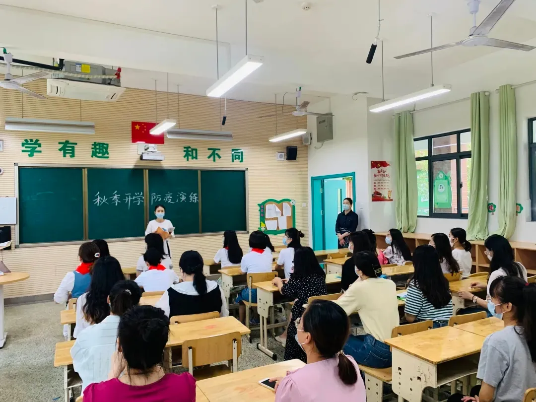 新华小学通过举行防疫应急演练,对学生入校、课堂教学、治愈学生返校、学生进餐、午休检査、安全消杀等场景应急处置流程进行演练,进一步提升学校疫情防控应急处置能力和水平,确保秋季学期各项工作安全稳定。