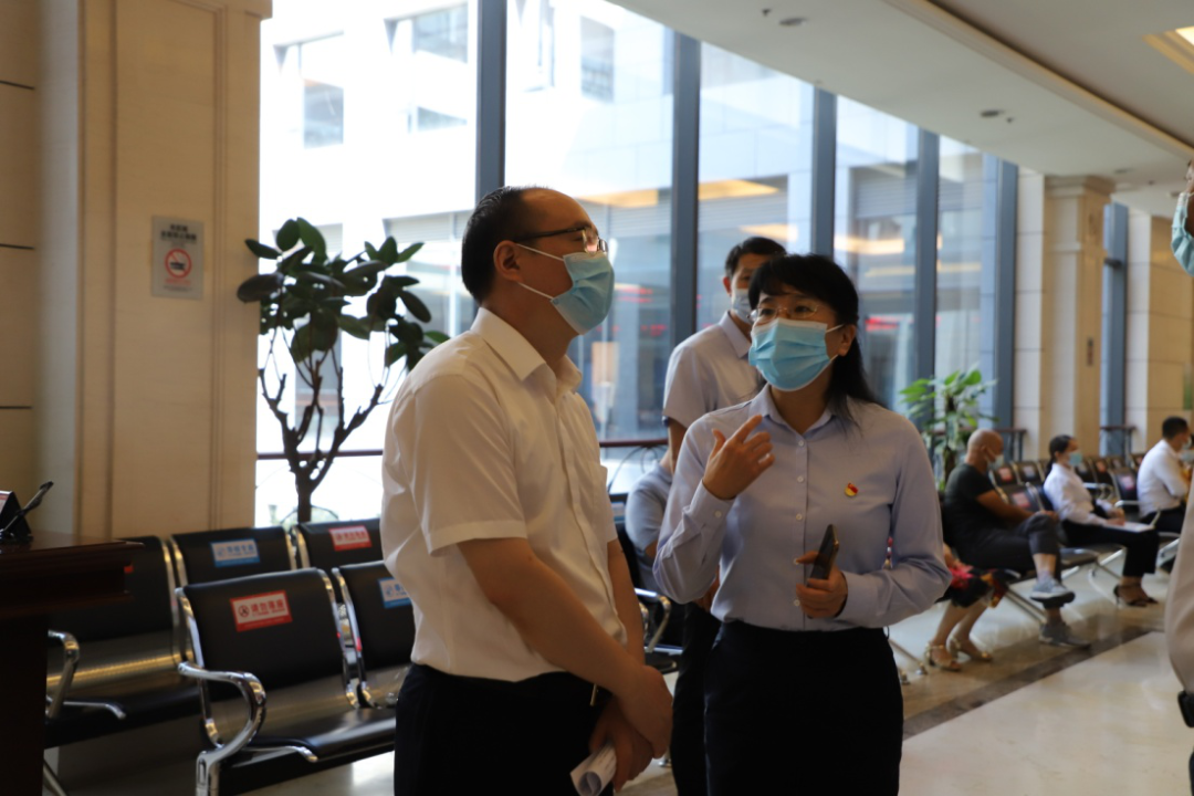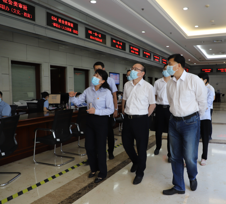 张贵达一行现场参观了企业开办区、自助纳税区、水电气公共服务区、24小时自助区等区域,重点调研 “一业一证”“跨市通办”等窗口,并向窗口工作人员了解一业一证上线运行情况。