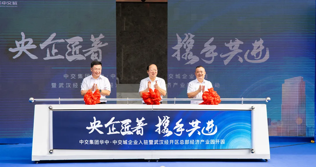 市委常委、武汉经开区工委书记刘子清,武汉经开区工委副书记刘誓保,中交集团华中区域总部总经理彭亮星等共同为园区开园揭幕。