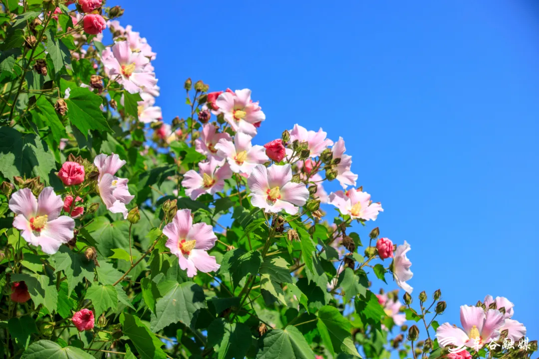 国庆期间,武汉经开区汤湖公园内,桂花、木芙蓉等花卉次第绽放,乌桕、枫香、银杏等植株秋叶初现。