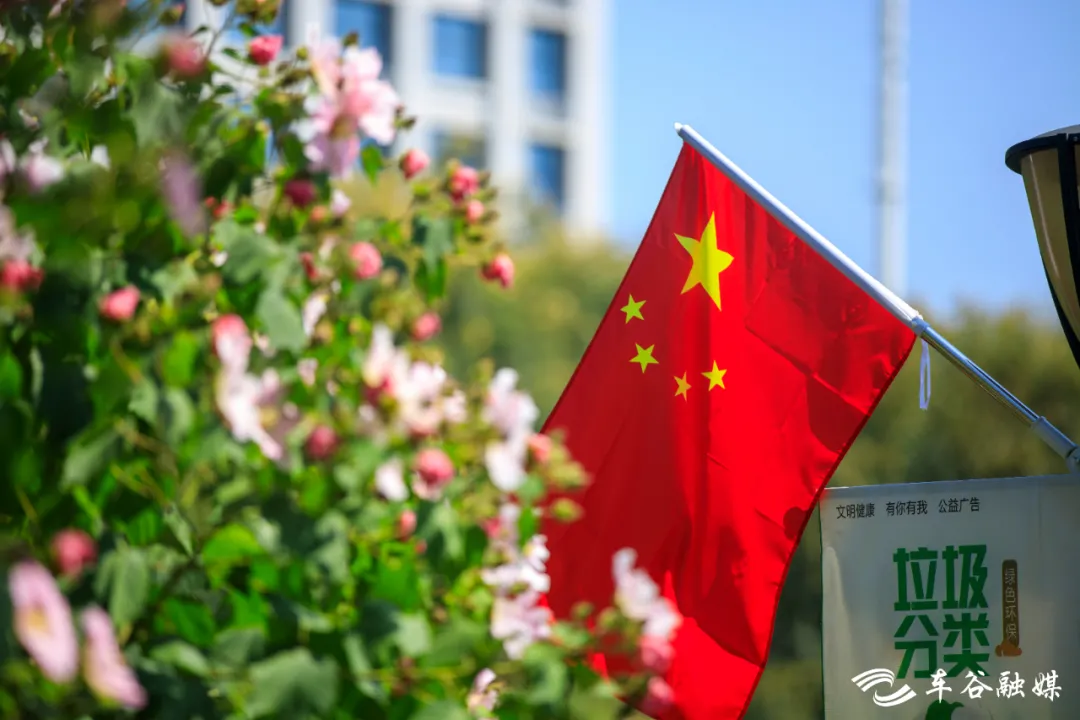 阳光明媚,一面面鲜艳的五星红旗迎风飘扬,与游客们的灿烂笑容相映成园中最美风景。