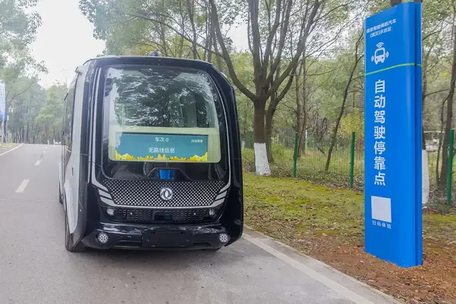 ▲龙灵山生态公园里示范运营的无人驾驶车。