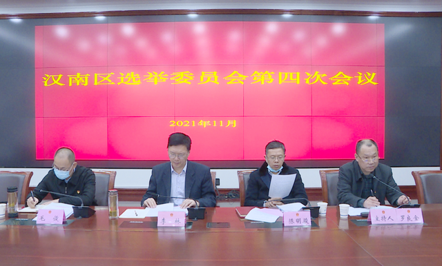 11月24日,汉南区选举委员会第四次会议召开,酝酿讨论正式代表候选人名单,并公布正式代表候选人名单、选举地点及日期,审查并通过了选举办法、选票样式,部署我区投票选举工作。汉南区人大常委会主任、区选举委员会主任李林,汉南区人大常委会党组书记陈明骏出席会议。