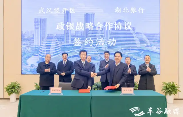 2月17日,武汉经开区与湖北银行签署政银战略合作协议,双方将构建更加紧密、互信的长期稳定政银战略合作关系,助力经开区“二次创业”,加快建设车谷副城和“3335”现代产业体系,实现双方互利共赢。市委常委、武汉经开区工委书记刘子清,湖北银行党委书记、董事长刘志高出席签约仪式并座谈,工委副书记、区长唐超,湖北银行行长赵军代表双方签署政银战略合作协议。