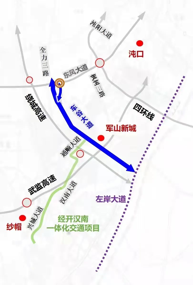 从地理区位上看,沿着车谷大道四周布局重点创新产业,同样也具有重大战略意义。如果将车谷大道沿东、西两端不断延伸,向东延伸,跨过长江可抵达光谷;向西延伸,经蔡甸可直达网谷。
