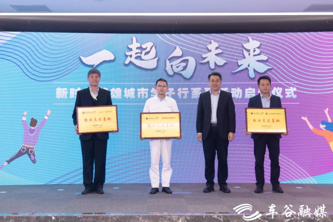 活动现场,武汉理工大学副校长王世杰为东风本田汽车有限公司、法雷奥照明湖北技术中心有限公司、武汉绿动氢能能源技术有限公司三家企业就业见习基地授牌。