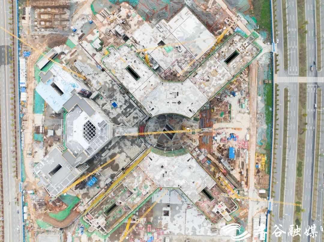 项目总工史晓亮表示,项目去年6月开工,康复中心为钢结构的中顶,整个造型寓意人的脊髓,以及四肢衍生。其中,最大单体康复医疗中心提供906张病床。目前,现场有700多名工人在施工。