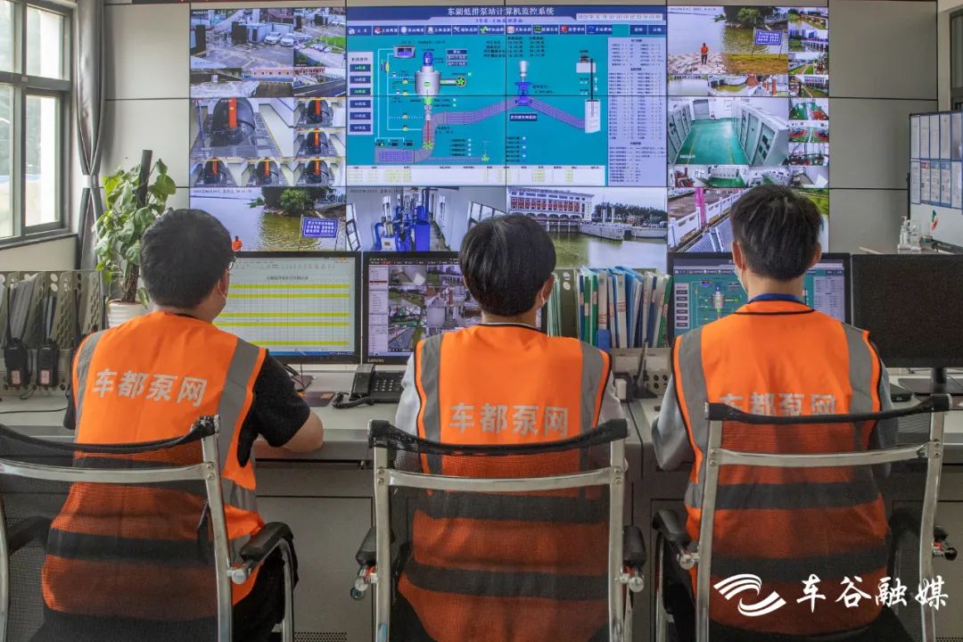6月24日上午,降雨天气依旧,在东湖低排泵站,工作人员密切注视着计算机监控系统,雨情、水情、旱情监测预警,水域水位流量等情况一目了然。同时,经过防洪排涝预报调度数学模型计算,精准评估险情后,区水务和湖泊局及时调度决策。