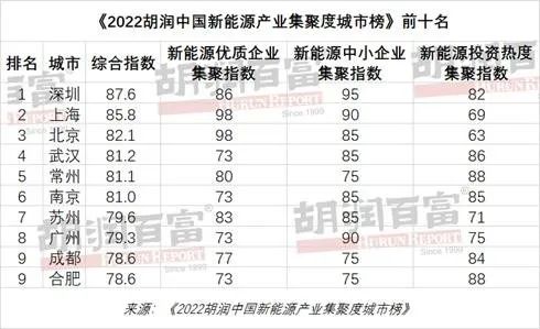 近日,胡润研究院首次发布中国新能源产业集聚度城市榜,列出了新能源产业集聚度最高的中国城市50强。