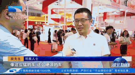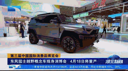 记者洪亚飞:“在本届消博会湖北展区,最有颜值担当、最具人气的,那就是我身旁这台车了,它将是世界上首台电动豪华越野车,是由东风猛士科技最新自主研发的。”