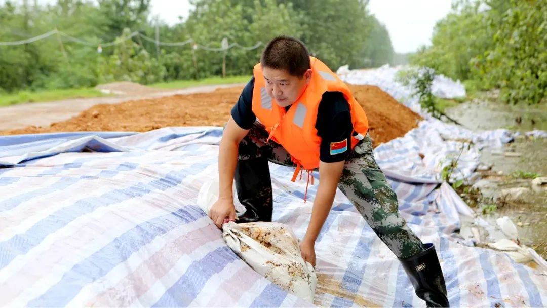 ▲抗洪抢险中,辛浩总是冲锋在前。