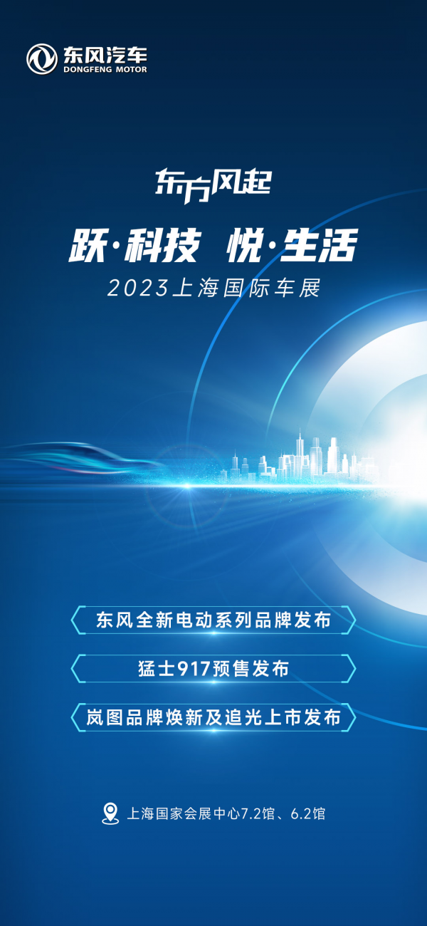 本次上海车展、东风公司展台,以“跃科技 悦生活”为主题,设置了整车、科技及服务生态两大展示区,将带来11款全新电动车型和多项科技跃迁的最新成果。