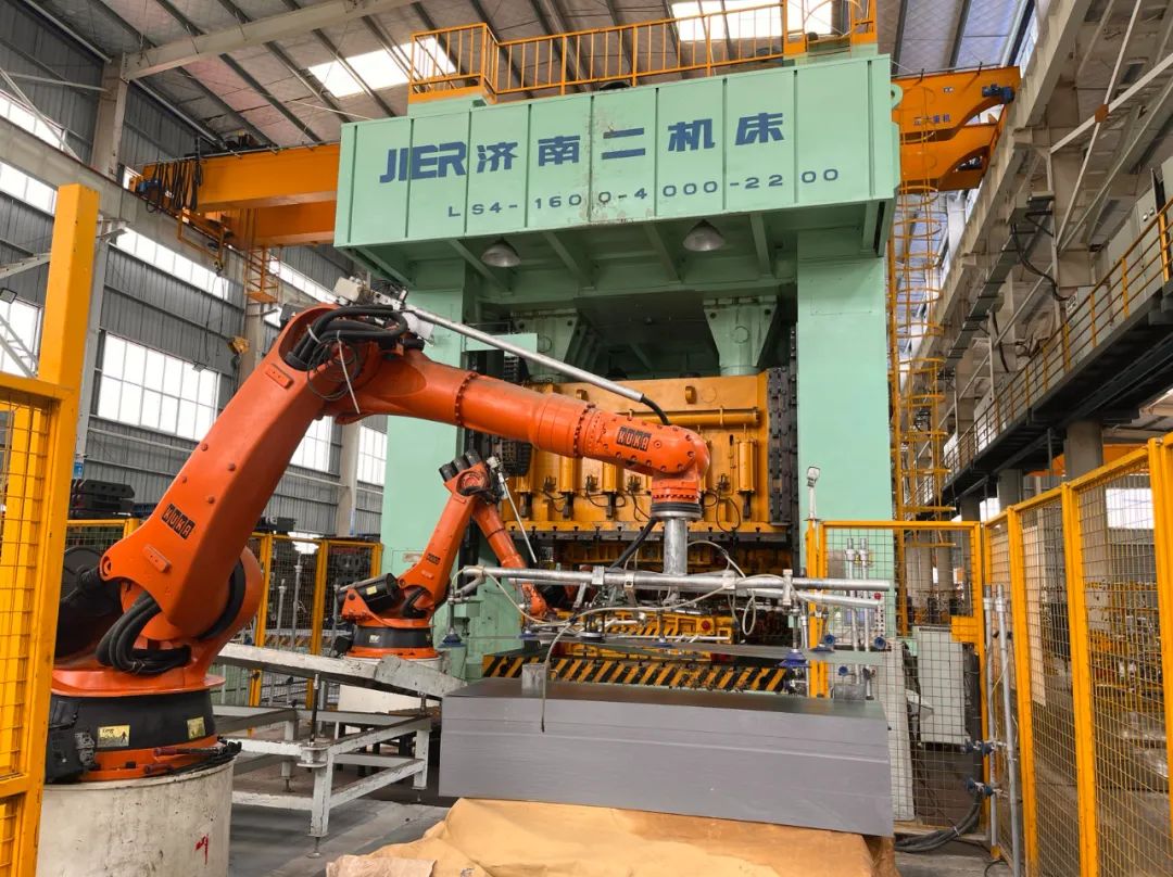 在武汉方鼎生产车间,一台十多米高的“巨无霸”冲床格外吸引眼球。记者在现场看到,机械手与锻压机床配合默契,零部件快速冲压成型。冯球林介绍,这台“巨无霸”是2200吨多工位压力机,目前武汉仅有3台。