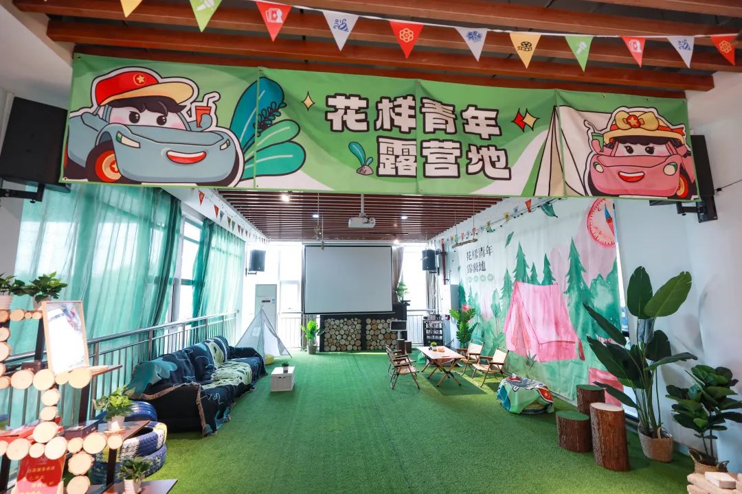 全力南青年之家通过党团共建模式,将全力南社区原本就有的羽毛球、台球、篮球等六大球场,志愿者、K歌、瑜伽等13个青年兴趣社团统筹规划,创新植入“青春之车”服务内容,焕新升级为花样青年露营地、活力青年飙车场、兴趣青年车友会、文艺青年充电站、志愿青年服务区、先锋青年会合点等六大生活场景,打造成“最懂车谷青年”的服务新阵地。