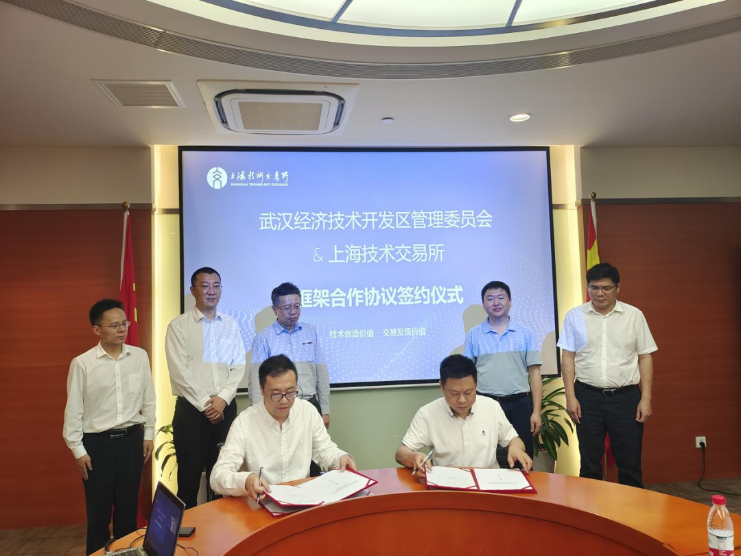 ▲武汉经开区与上海技术交易所签订框架合作协议