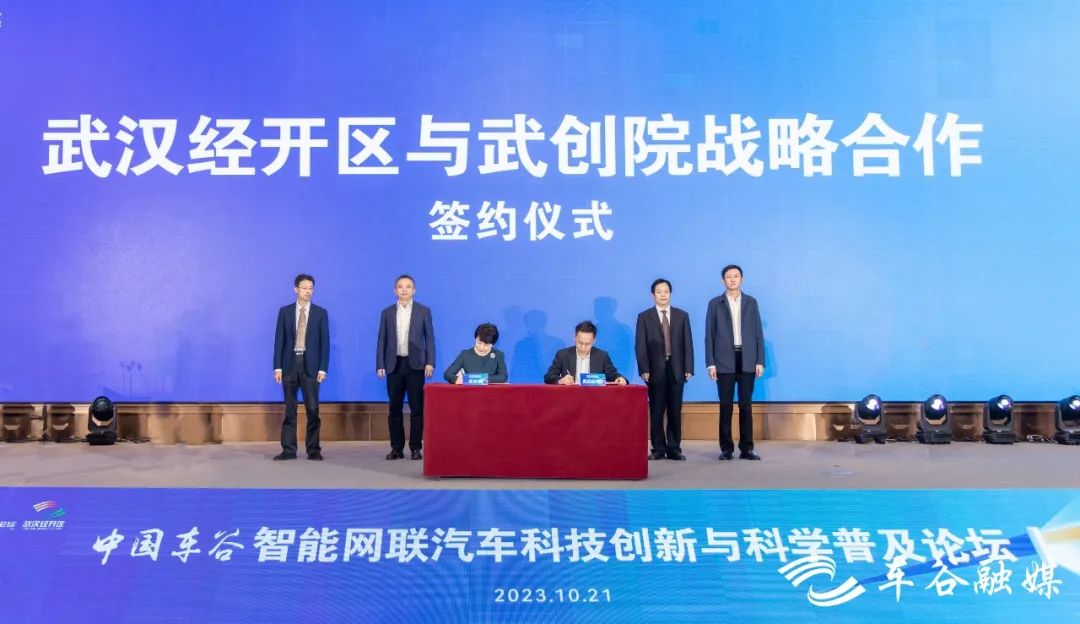 10月21日,在2023东湖论坛•智能网联汽车科技创新与科学普及论坛上,武汉经开区与武汉产业创新发展研究院(以下简称“武创院”)签署战略合作协议。双方将充分发挥各自资源优势,围绕创新平台、人才引育、科创基金等,建立高效完善的院地合作机制,为武汉经开区高质量发展提供科技支撑。当天,武创院车路协同企业联合创新中心揭牌成立。