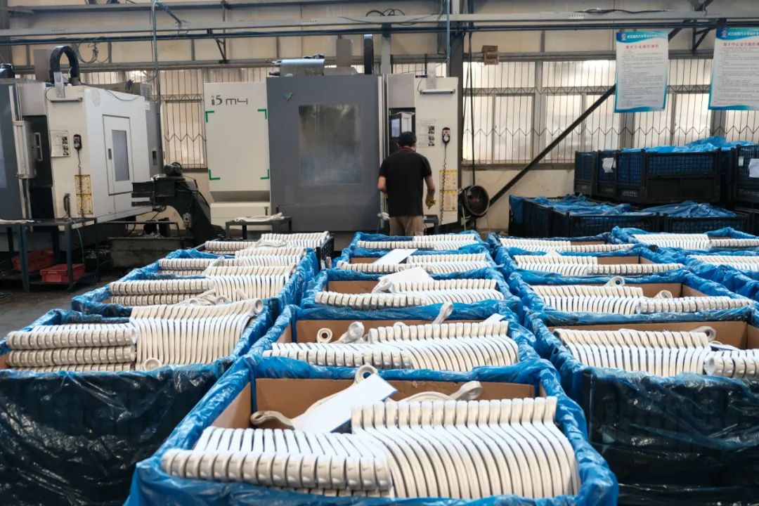 ▲武汉楚凯生产车间,整齐摆列的零部件产品。
