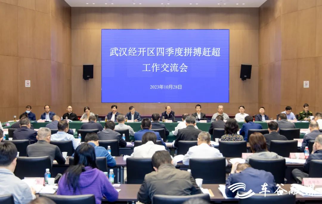 10月28日,武汉经开区召开四季度拼搏赶超工作交流会,贯彻落实省委书记王蒙徽,省委副书记、省长王忠林在武汉市区委书记座谈会上的讲话精神和省委常委、市委书记郭元强,市委副书记、市长程用文在武汉市区委书记工作交流会上的讲话精神,研究部署全区四季度重点工作。市委常委、武汉经开区工委书记刘子清主持会议并强调,要提振精神、全力冲刺,确保完成全年目标任务,在全省加快建设全国构建新发展格局先行区、全市奋力打造新时代英雄城市进程中,体现经开担当、作出经开贡献。