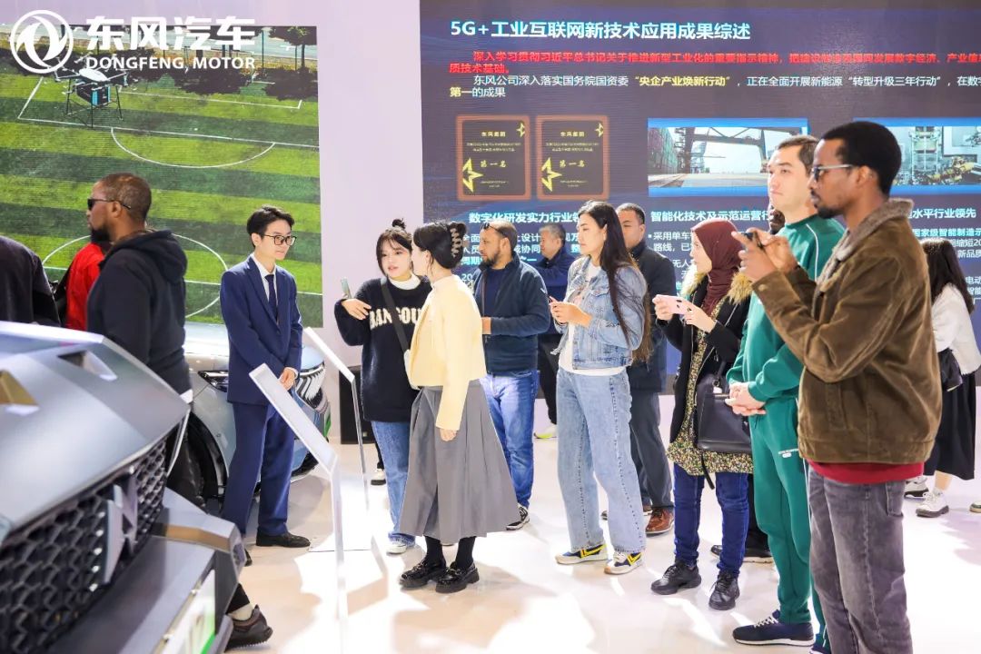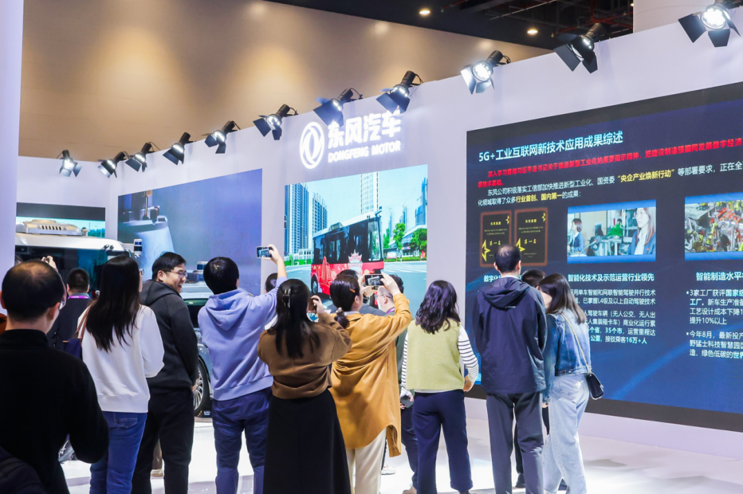 现场还设置屏幕动态演示东风自动驾驶无人公交、无人出租车,在雄安新区等城市示范运营无人驾驶集装箱卡车、在厦门等港口示范运营以及猛士、岚图5G全连接智能制造工厂东风商用车5G主动服务平台(完好率中心)等亮眼内容,展示出东风公司在“5G+工业互联网”融合发展、场景应用、技术攻关、创新生态等方面的最新发展情况。