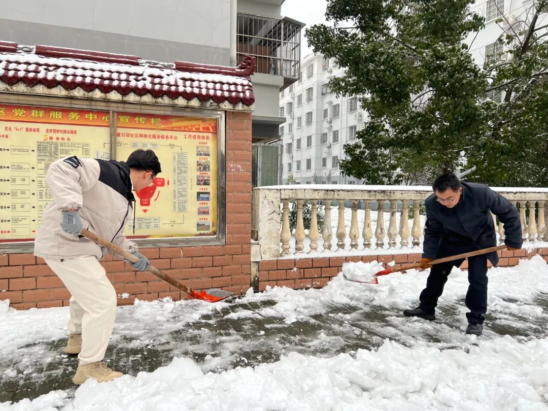 “铲雪除冰,党员先行,我们要再加把劲,为出行居民开辟出一条平坦的安全路。”在薛峰社区商业街和陡埠村村口,一名下沉党员望着路面的积雪,加紧挥动手中的铁锹,“同志们加把劲,让群众安全出行。”2月4日,工委政法委以雪为令、迅速反应,秉着“应下尽下”原则,政法委主要领导带领49名党员、志愿者全力协助薛峰社区、陡埠村做好除雪保障、隐患排查、应急处置、扶贫救困工作。