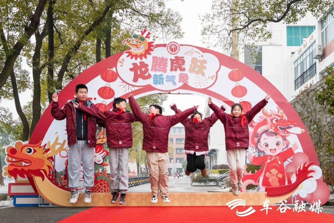 校园内,沌口小学还设置了集中展示寒假手工作业的《寻龙记》作业墙、“龙鳞许愿墙”、龙门等,学生们贴新年心愿、展示寒假作业,集体跨过“龙门”,仪式感直接拉满。