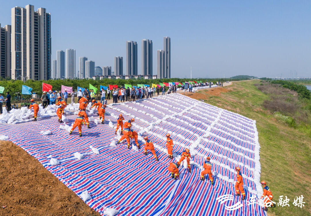 5月17日,武汉经开区在通顺河新合堤举行防汛抢险现场培训会。此次培训以现场演练的形式开展,区防汛抗旱指挥部成员单位及各分指挥部主要负责人参加培训。