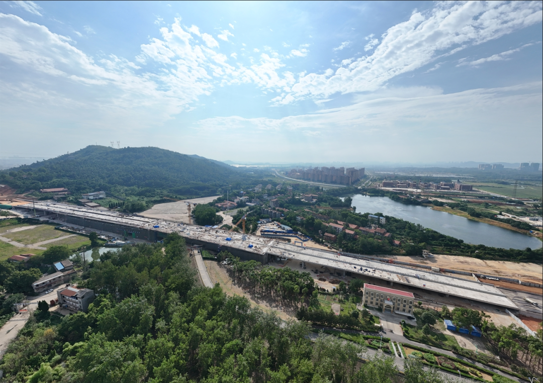 大军山跨线桥属于左岸大道大军山段,全长717m,主桥跨径90m,上跨檀军公路、鄂江左岸大堤,采用大节段现浇法施工。因项目毗邻长江,地质条件异常复杂,同时,施工期间经历梅雨季节,降水量大、极端天气多,给施工带来了诸多挑战。