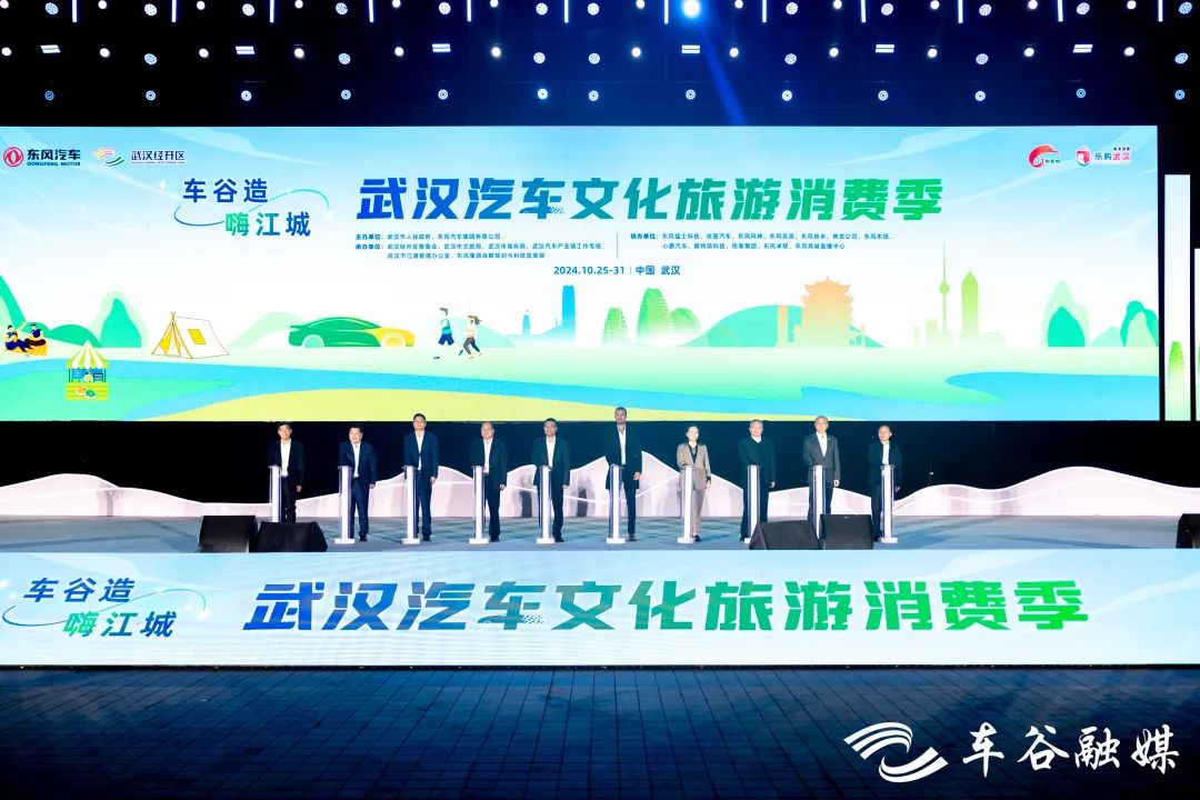 活动现场,李晓燕、彭原璞、刘子清、胡树华、罗军民、杜道峰、冯擎峰、李卫东、诺安文等共同启动“车谷造 嗨江城”2024武汉汽车文化旅游消费季暨东风汽车55周年感恩相伴—钜惠江城活动。