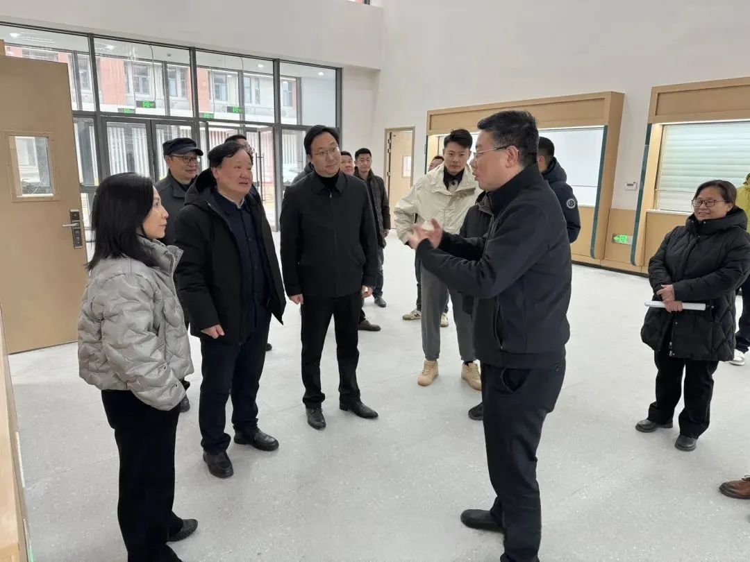 ▲华中科技大学党委常委、副校长解孝林带队巡查军山校区试运行工作情况。
