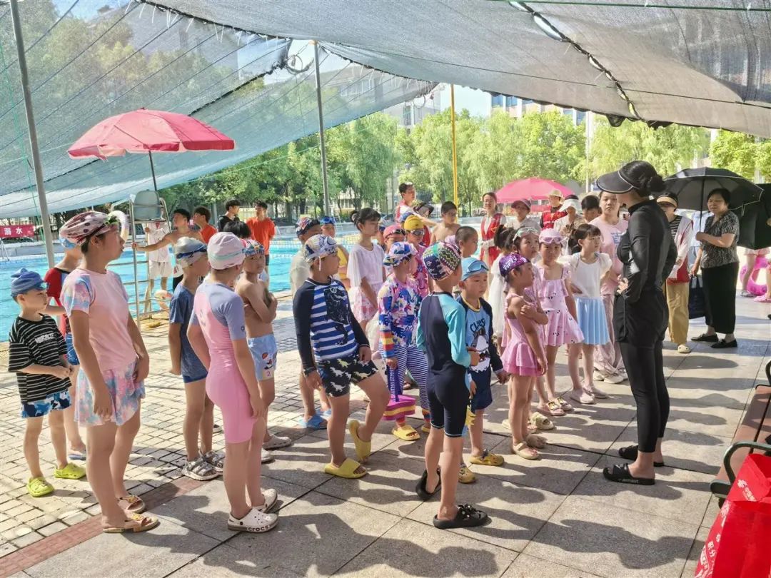 武汉经开区宁康园神龙游泳池是本次选材夏令营培训点之一,近期举办了防溺水实训课,40余名青少年走进神龙游泳池,通过实景教学与实战演练,沉浸式掌握防溺水自救互救技能。