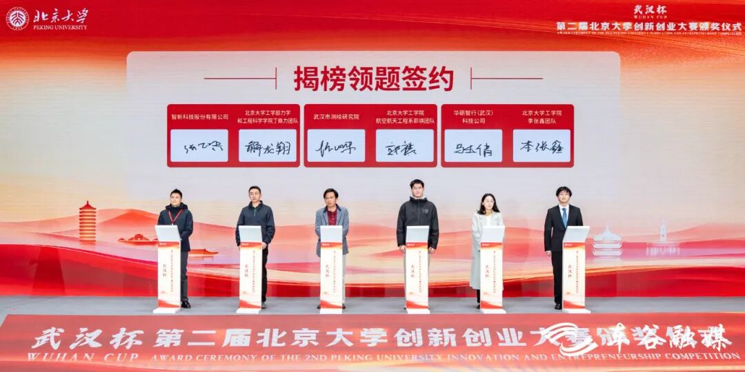 签约环节中,本届10个优秀创新创业项目签约落户武汉,3个北大科研团队在武汉揭榜领题。其中,智群机器人项目落户武汉经开区,该项目致力于推动人工智能从“单点突破”迈向“群体智能”,自主研发FastSwarm集群大脑,可以广泛应用在矿区勘探、智能巡检、应急搜救等场景中。北京大学力学与工程科学学院丁鼎力团队、工学院李张鑫团队分别揭下由智新科技和华砺智行两家经开区企业张榜的项目,这些项目紧贴企业真实技术瓶颈与创新发展需求,将进一步推动产学研融合发展。