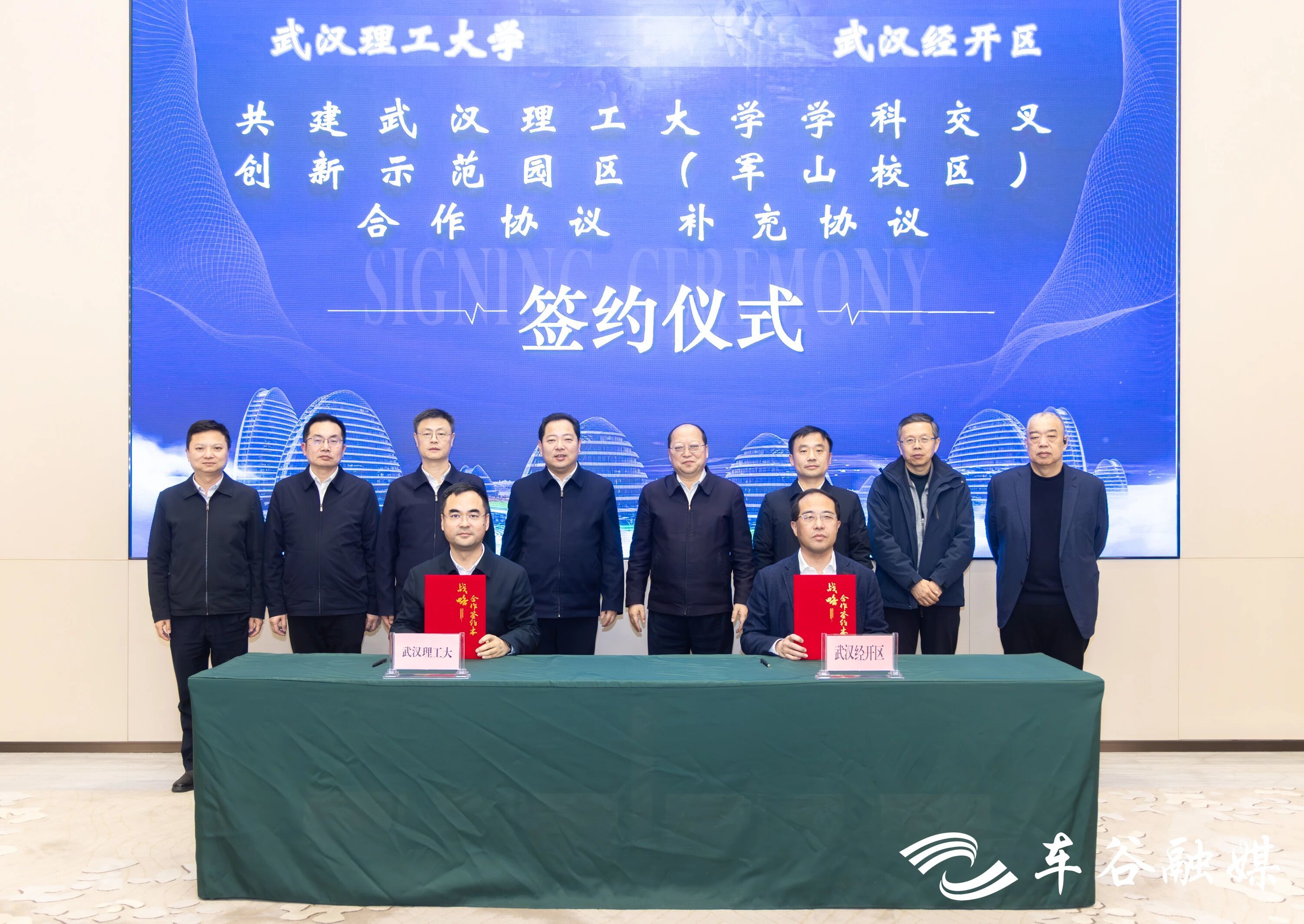 武汉理工大学党委书记孟芳兵,校长王发洲,市委常委、武汉经开区党工委书记刘子清,党工委副书记、管委会主任赵永强见证签约并座谈交流。